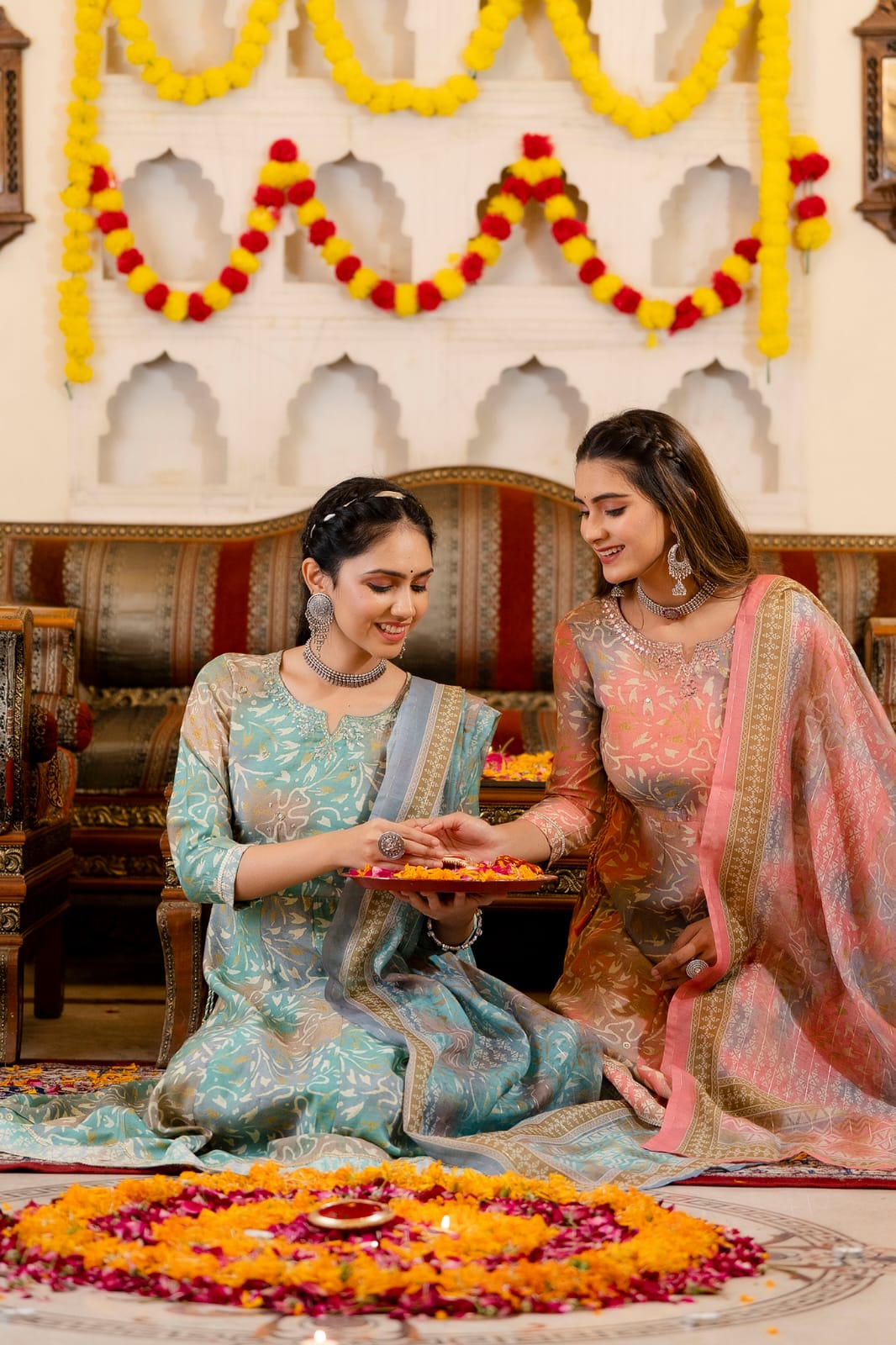 The kurta of this Sea Green muslin salwar suit has a round neckline with three quarter sleeves and flared hemline. It has block printed floral motifs all over. It accompanies a dupatta with block printed floral designs and attarctive line borders. The solid same colour pant completes the set beautifully.