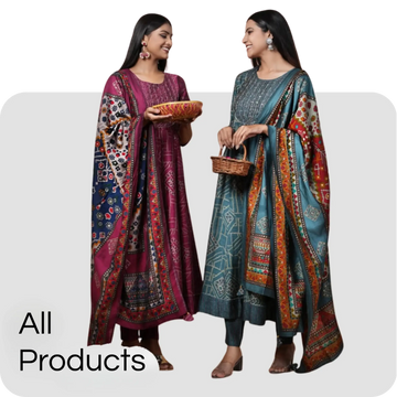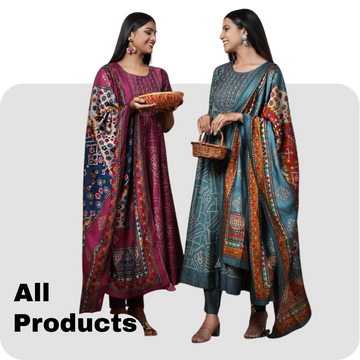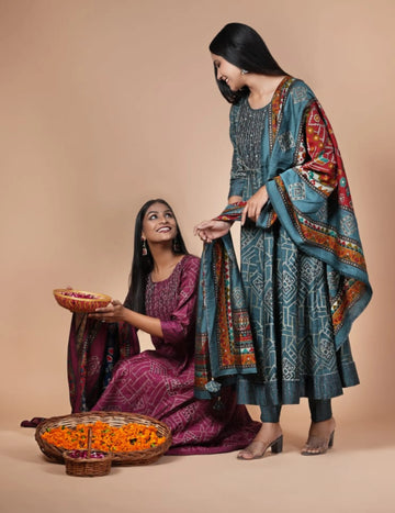 Perfect for a casual day out with the ladies, this stylish fusion dress features elegant Shifali work. Made from rayon with a flared fit, round neckline, and three-fourth sleeves, it’s paired with a muslin dupatta for a chic ethnic touch