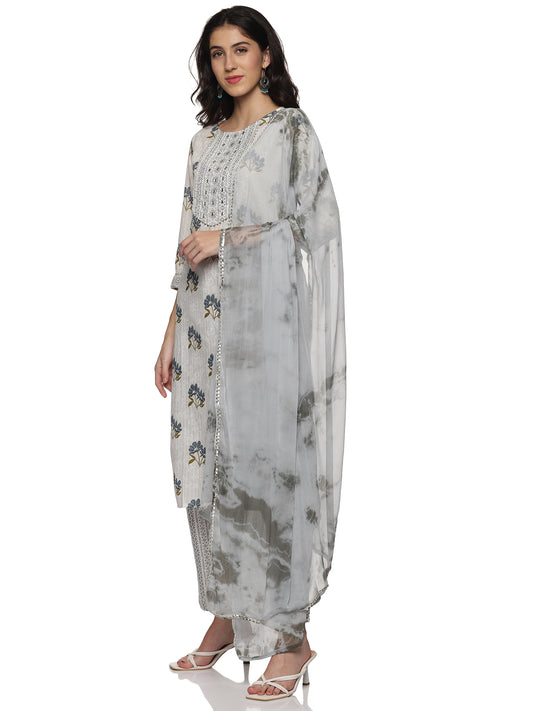 Anarkali Modal Chanderi - Peach & Grey Embroidery work