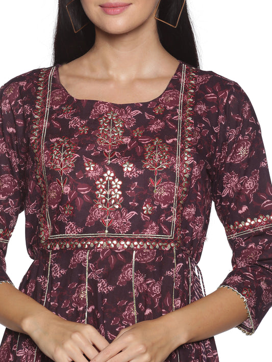 A beautiful Anarkali suit set from our latest collection. The set includes a printed Anarkali kurta, churidar, reversible dupatta. The base fabric of this set is cotton and kurta comes with cotton lining.