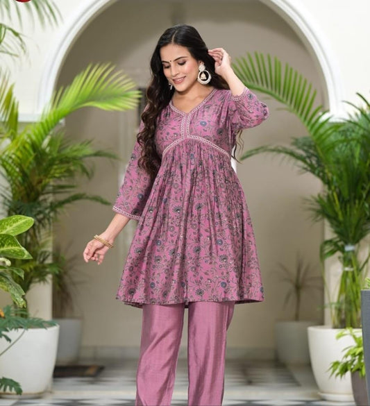 Shade of Purple Grape - Floral Print Cord Set cotton